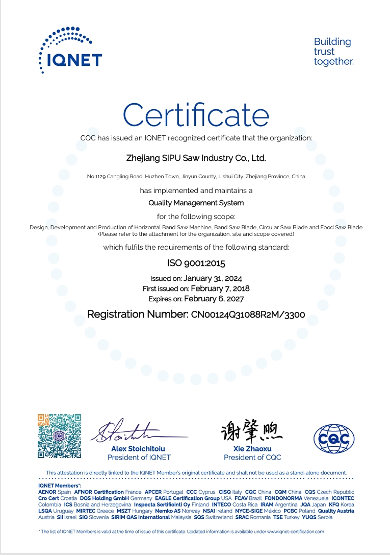 公司在中国台湾和德国分别合作了全球知名的锯床锯条研发机构,为产品提升品质和创新提供动力源。